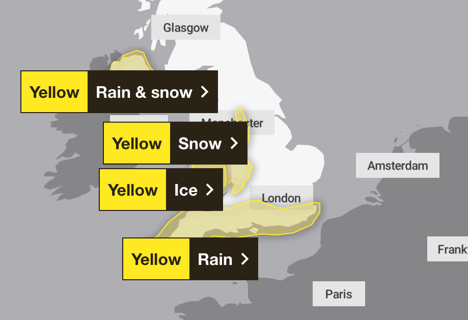 The Met Office has issued yellow alerts for other regions, with some areas facing icy